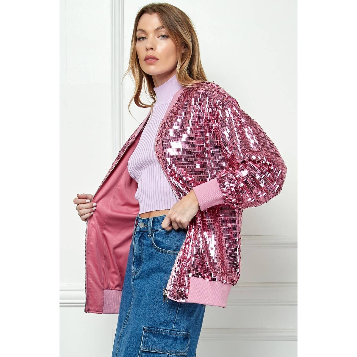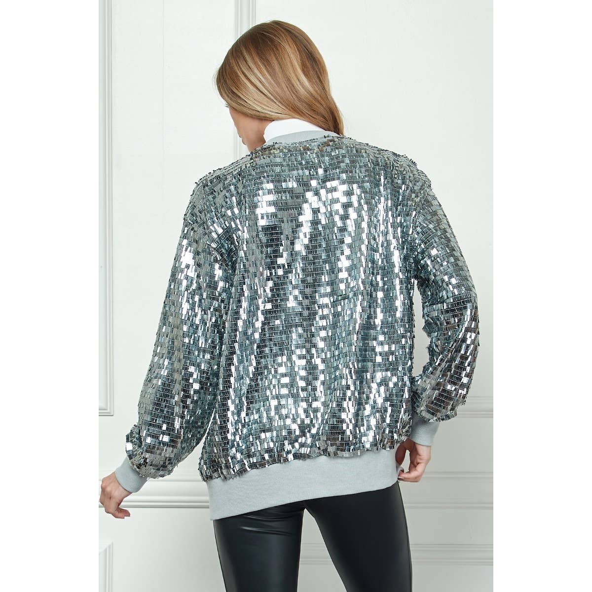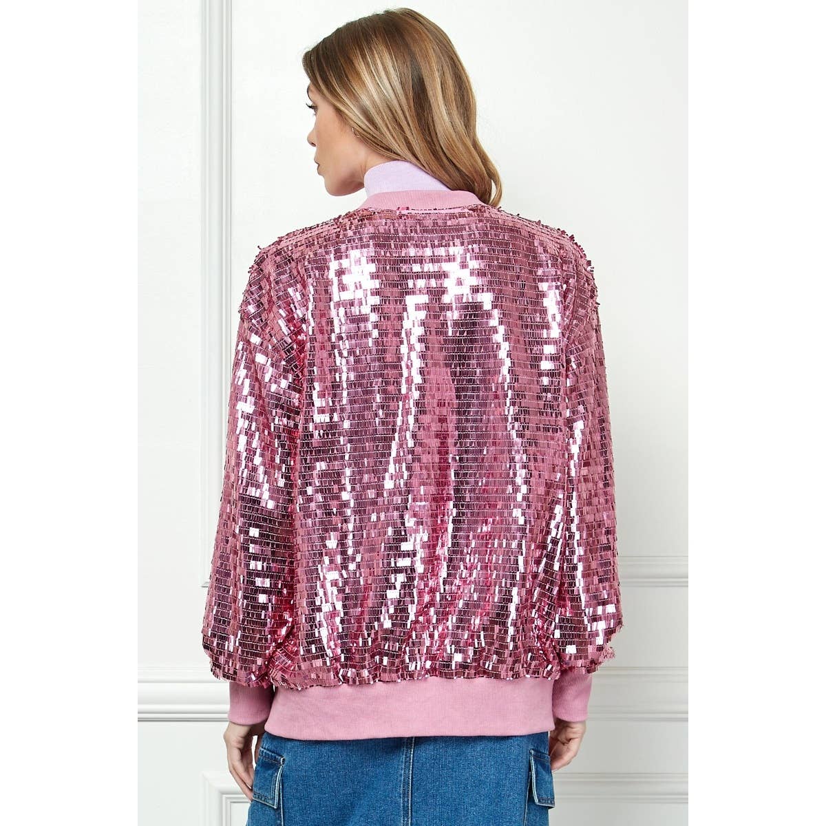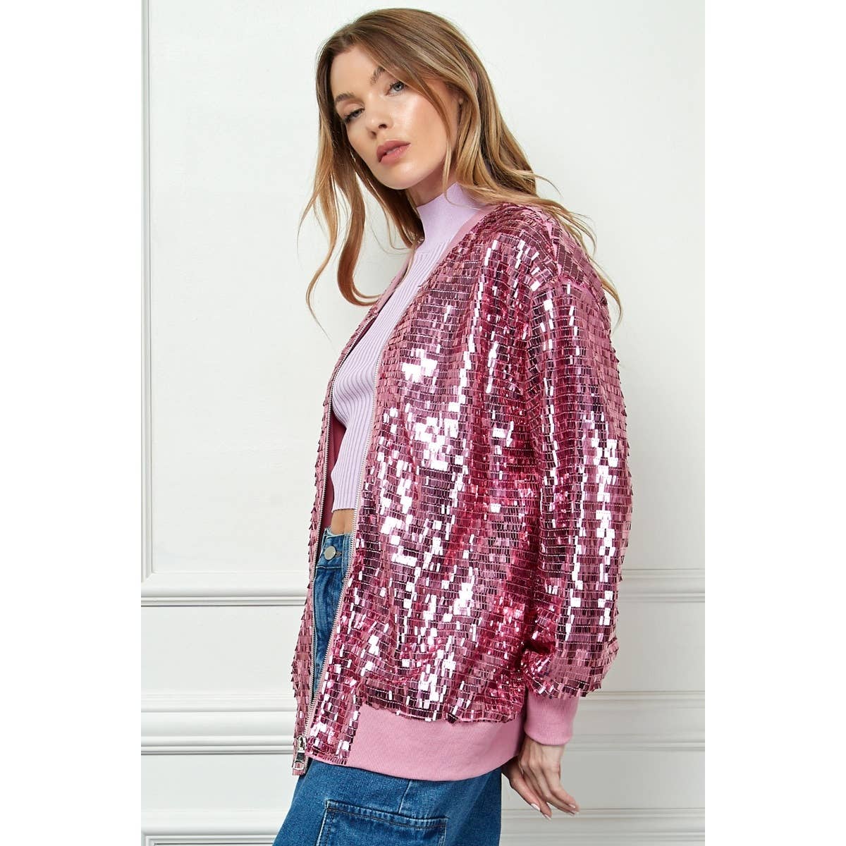 All over sequins -Fully lined -Solid contrast -Relaxed fit -Zip up Zip up and step into a world of glitz and glamour! The Vegas Sequin Bomber Jacket is fully lined with all over sequins and solid contrast detail, making it the perfect statement piece for your next daring adventure. Its relaxed fit allows for easy movement, ensuring you're always ready for whatever excitement comes your way. Take a risk and turn heads with this bold and stunning jacket! Make a statement and stand out from the crowd with the Vegas Sequin Bomber Jacket. Fully lined with all over sequins and solid contrast detail, this jacket is the perfect way to add a touch of glitz and glamour to your wardrobe. With its relaxed fit, you'll have the mobility to take on any adventure with confidence and style. Elevate your fashion game and make a lasting impression with this bold and stunning piece!