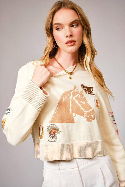 Cassidy Western Boots Stitch Pattern Crew Neck Sweater